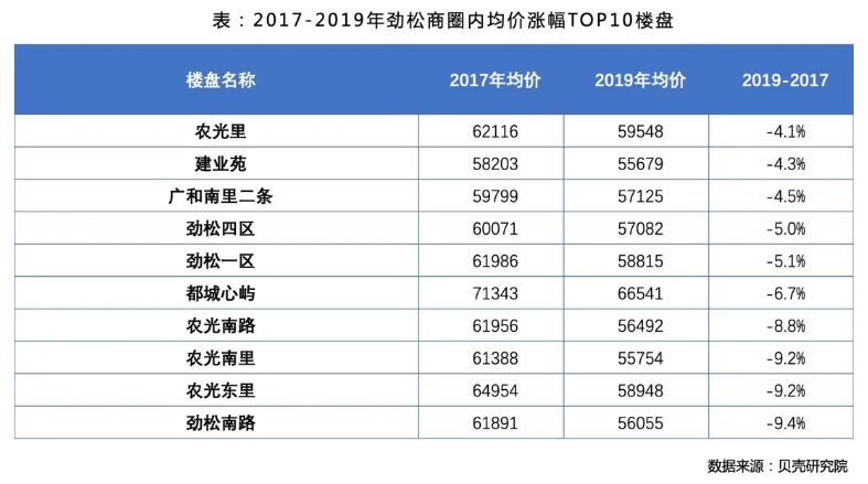 近年来持续推进旧改且成交体量较大的农光里小区,2018年成交均价同比下跌7.2%,2019年同比上涨3.3%,整个下行期(2019-2017)均价累计跌幅仅4%,跌幅在商圈内年度成交5套以上小区中最小。老旧小区改造可以有效促进资产的保值。